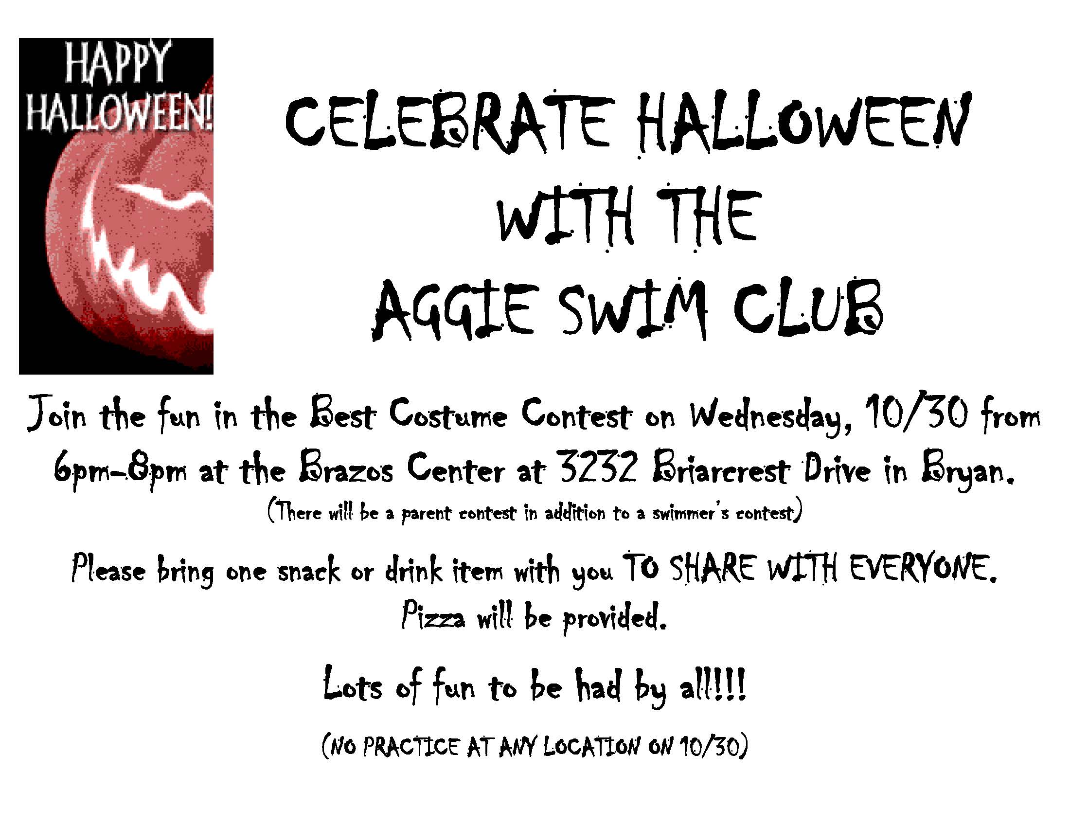 Annual Team Halloween Party | The Brazos Center | All AGS swimmers and their families | ![]() |